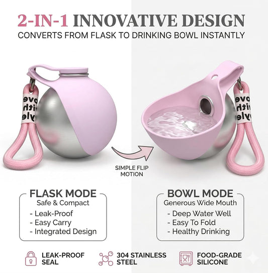 2-in-1 Folding Dog Water Bottle & Food Cup with Pump Dispenser