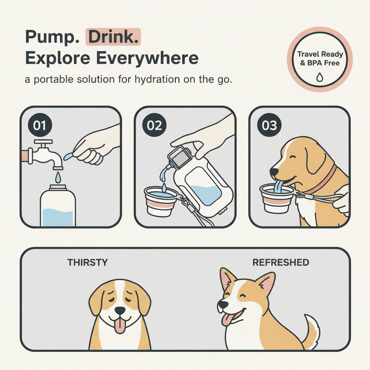 Keep your furry friend happy and hydrated on every adventure with this clever all-in-one pump-action travel bottle. It is the ultimate spill-free solution for thirsty pups and active owners on the go!